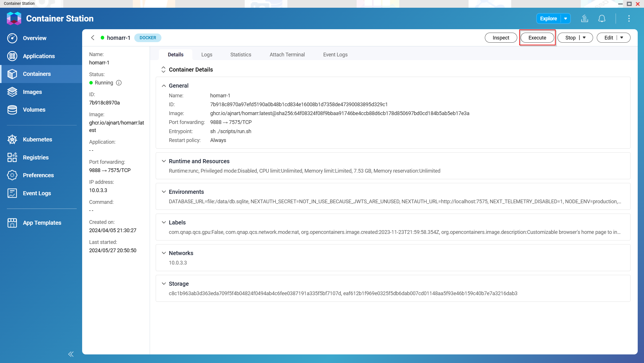 2. Run docker exec -it <container-id> /bin/bash homarr <your-command-goes-here>.